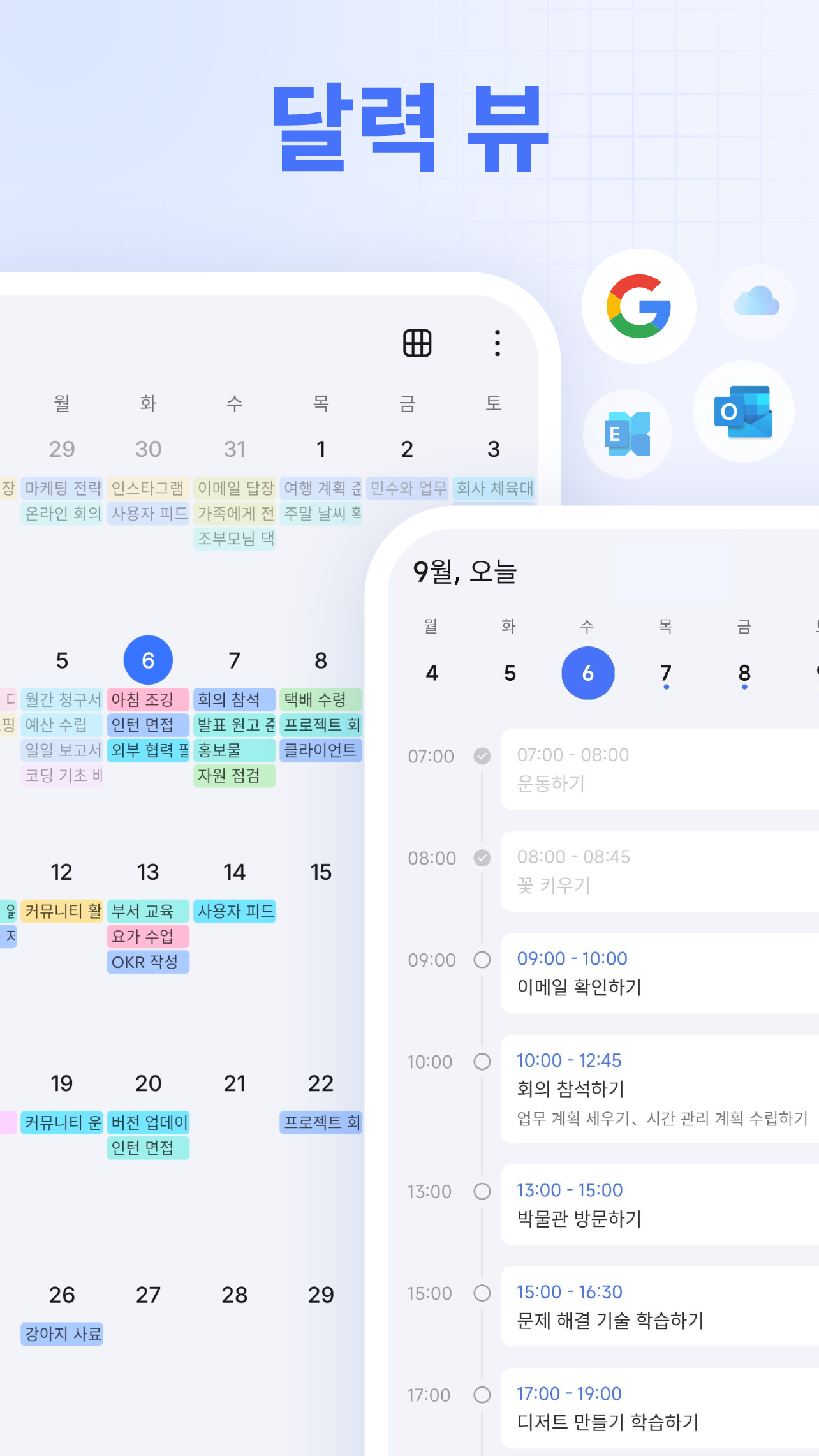 - 강력한 캘린더 통합 및 일정 관리: 단순히 할 일만 관리하는 것을 넘어, 내장된 캘린더 기능을 통해 작업과 일정을 한눈에 볼 수 있습니다. 구글 캘린더, 아웃룩 캘린더 등 외부 캘린더와도 연동되어 모든 일정을 한곳에서 관리할 수 있으며, 드래그 앤 드롭으로 작업의 마감일을 쉽게 변경할 수 있어 유연한 일정 관리가 가능합니다. 다양한 캘린더 뷰(일, 주, 월, 목록)를 지원하여 사용자의 선호에 맞춰 일정을 확인할 수 있습니다.